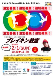 【追加募集!!】~オリンピアン巡回指導事業 ブレイキンオリンピアンAyumiさん降臨!~ ブレイキン教室を開催します👍🧢✨