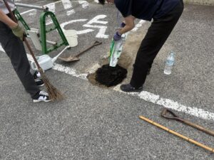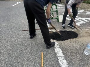 4月22日に駐車場にできていた大きな穴を整備する作業を行いました。