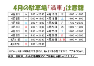 ランニングコース・駐車場満車予報【4月分】