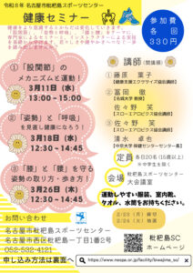 👩🦰令和8年3月11日㈬、18日㈬、26日㈭午後開催『健康セミナー』講座参加者募集!👩🦰