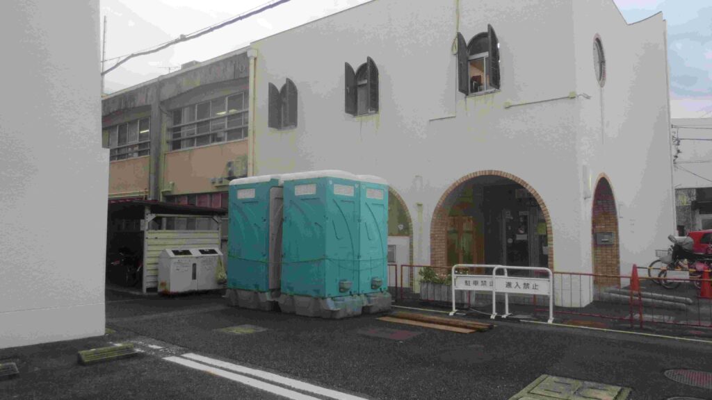 <仮設トイレは、11月7日に汲み取り作業、11月10日に業者に返却する予定です。7日と10日には、大型トラックが入庫する予定です。ご理解とご協力をお願いいたします。>