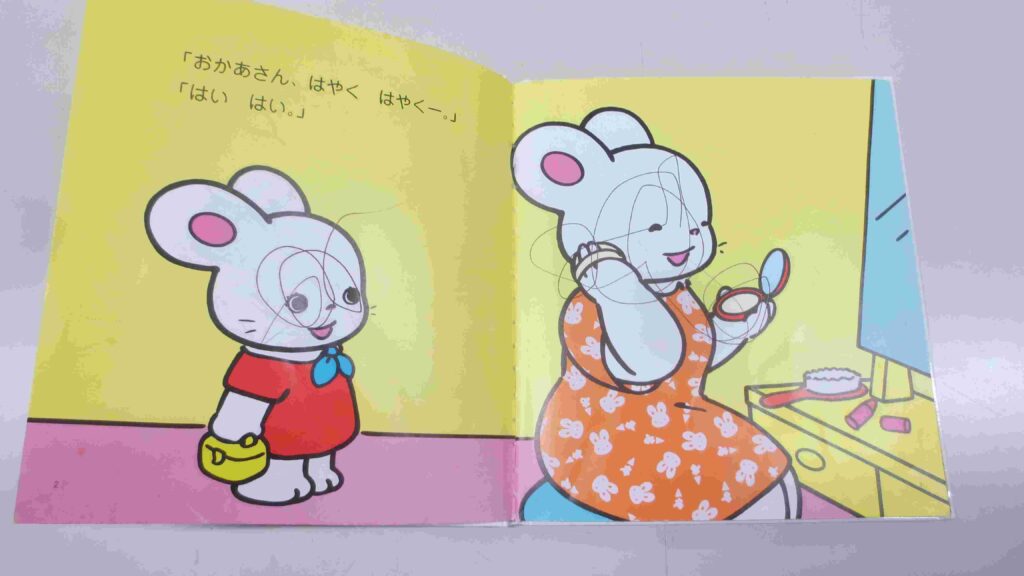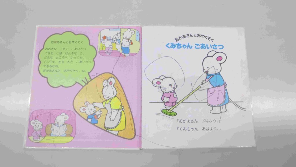 かべや本がないています。そこで、次のようなはり紙をしました。