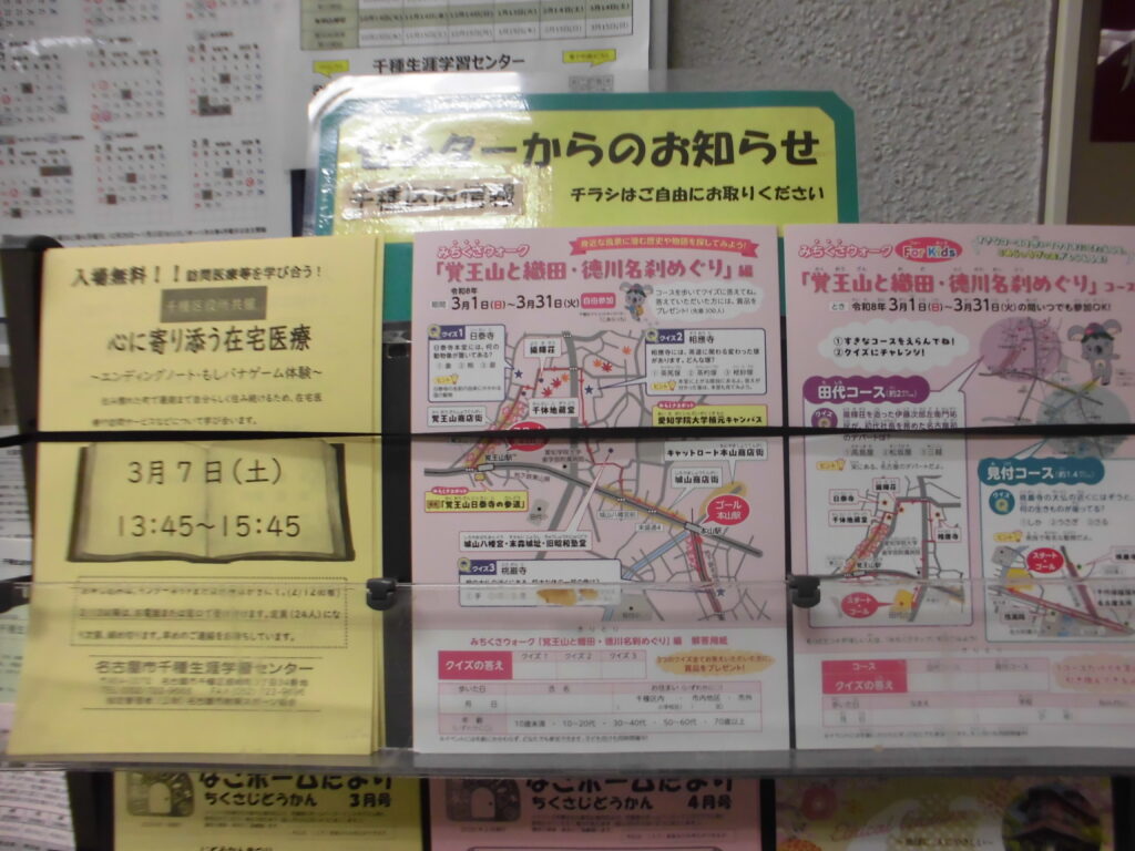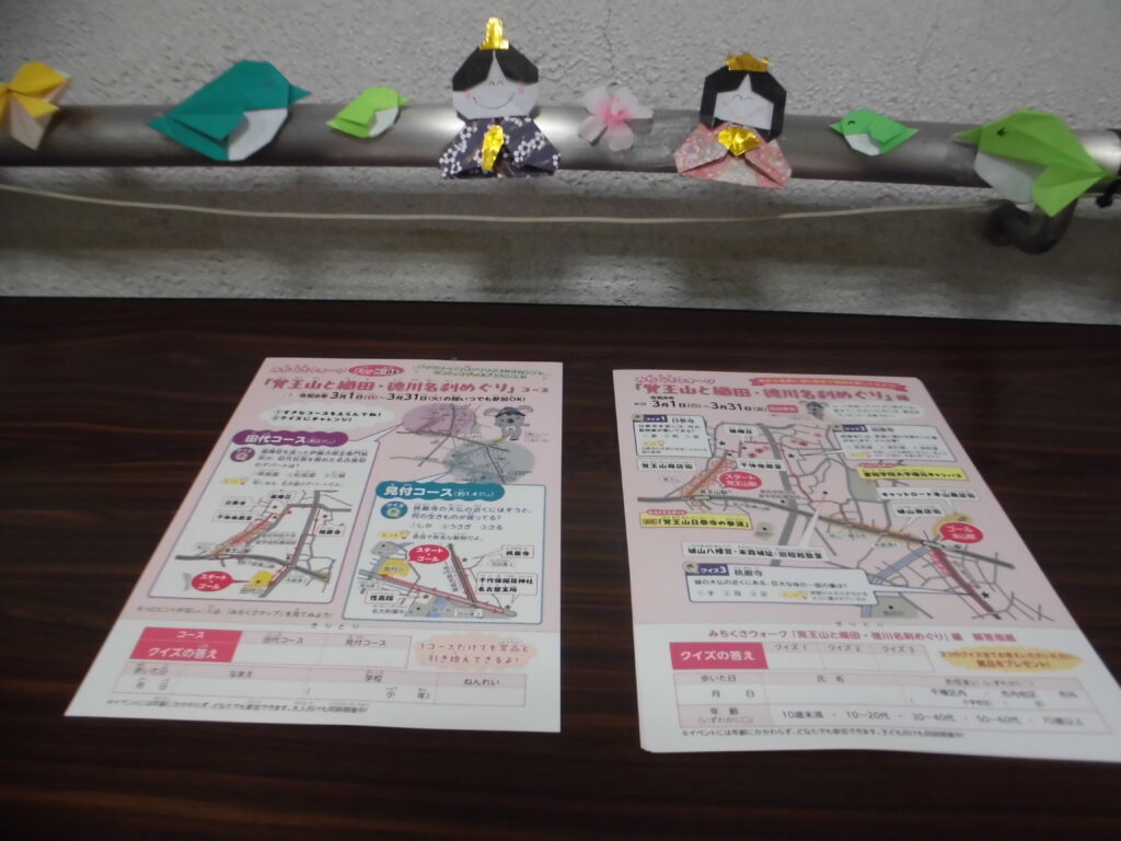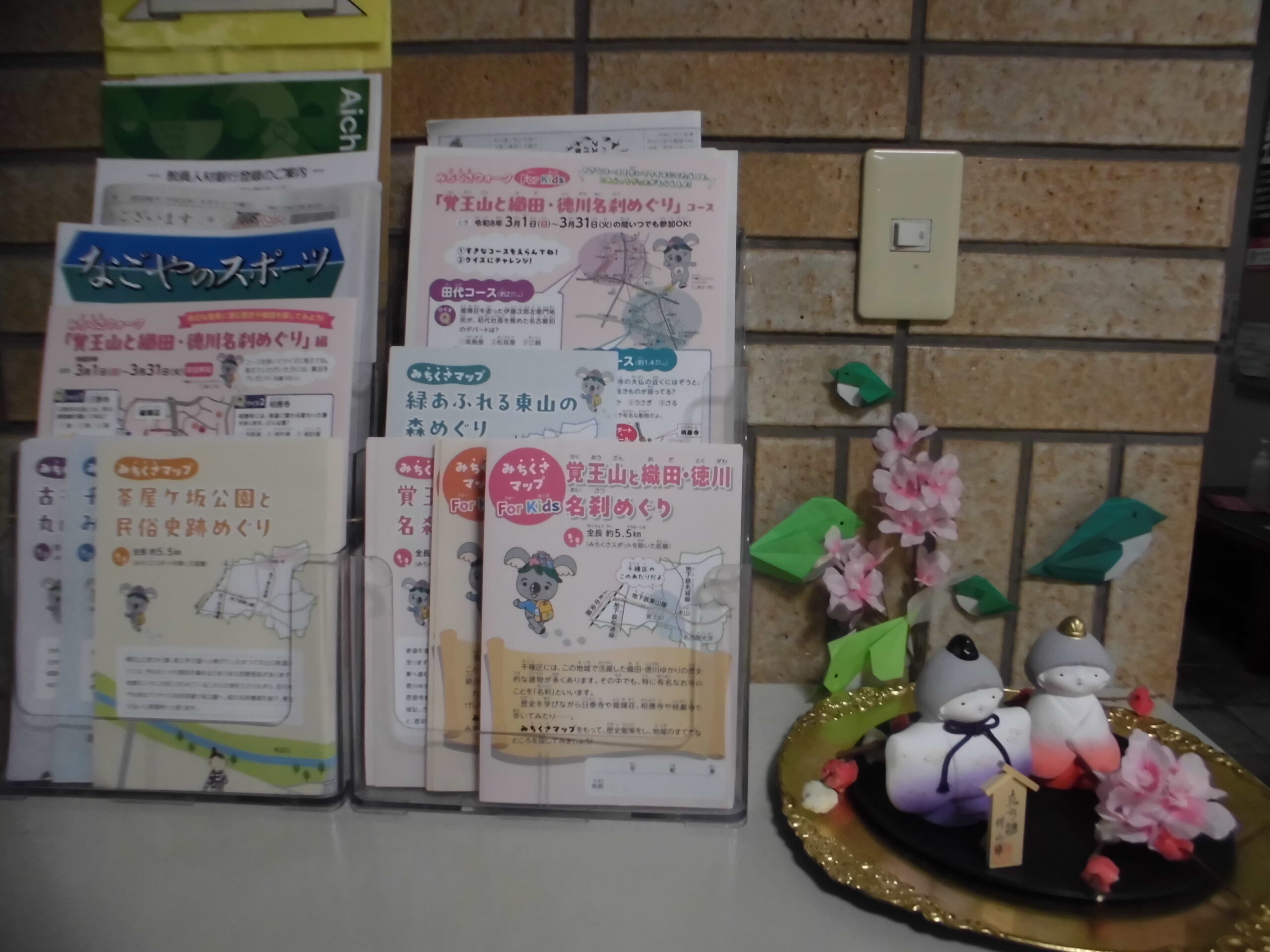 ひな祭りの日に 2026年3月4日 水曜日 「覚王山と織田・徳川名刹めぐりのパンフレットありますか?」 3月3日、ひな祭りの日に親子連れが窓口で、お尋ねになりました。 「ありますよ!」 子ども向けマップ「みちくさマップ For Kids」もあります。 この横に雛飾りもあります。 そして、アジア競技大会まで200日です。