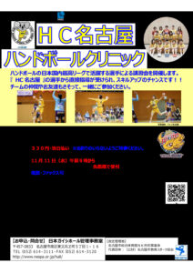 HC名古屋ハンドボールクリニック開催案内
