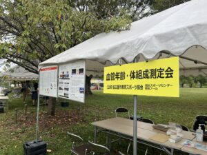 「秋の物語」に参加ー🍂 2025年10月14日 火曜日 10月11日(土)に戸田川緑地で開催した「秋の物語」に参加してきました! 今回は南陽プールと合同でブース出展してきましたよー😎 ただ・・・当日はあいにくのお天気で・・・☔🐸 雨☔が降る中でも測定会に参加していただいたみなさんありがとうございました😭 これからも地域のイベントにどんどんしていきたいと思います😋