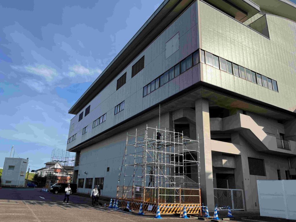 駐車場の北側2か所に足場が組まれました。
