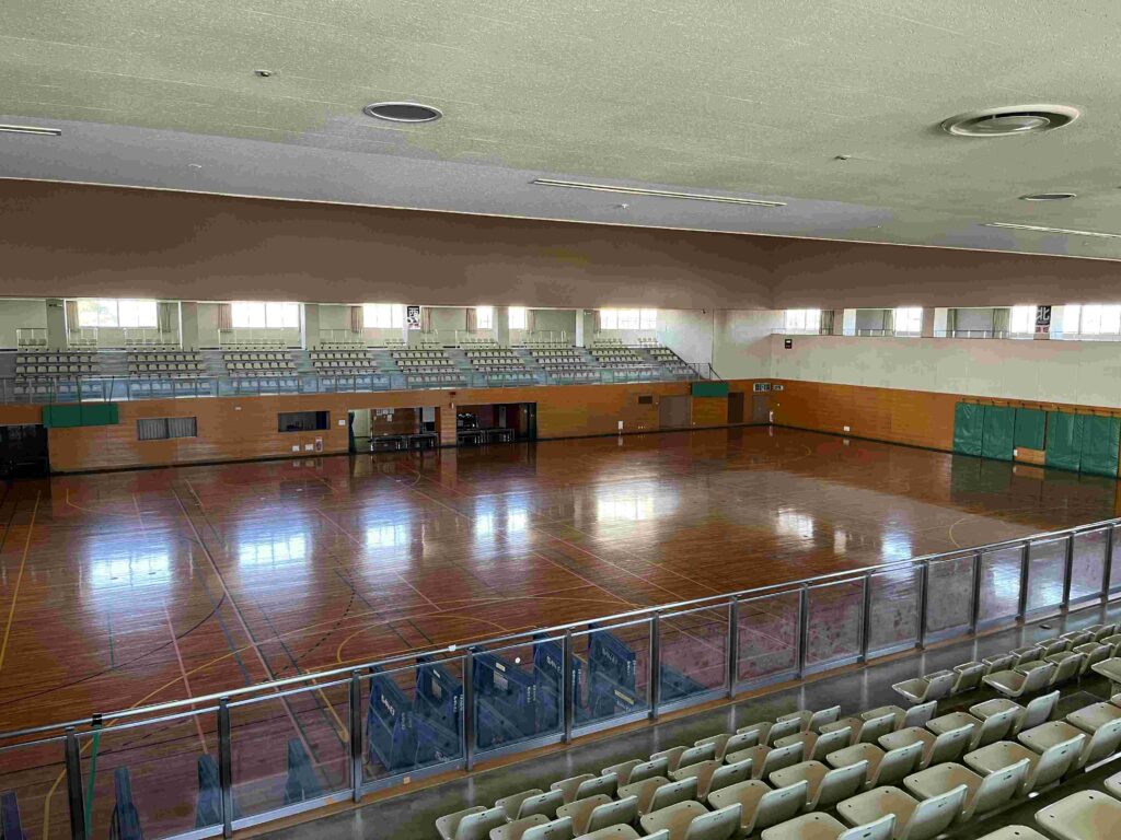 2月上旬まで全館停電のため、普段ほとんど開けない第1競技場のカーテンをすべて開けました。