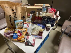 お米やお餅、ジュースやお菓子、海苔など様々な食品を提供していただきました