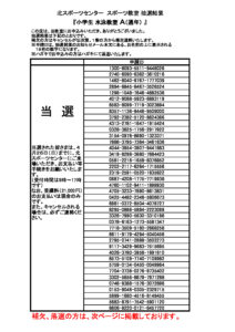 この度は、当センター主催の令和7年度 『水泳教室(小学生・水曜)A・B』に多数のご応募をいただきありがとうございました。