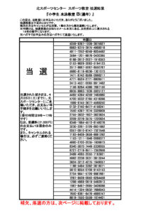 各教室の抽選結果につきましては、添付PDF(抽選結果)にてご確認ください。