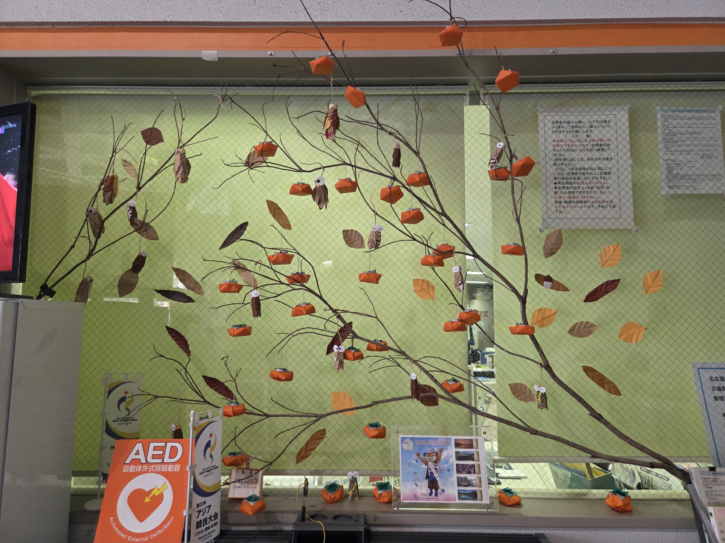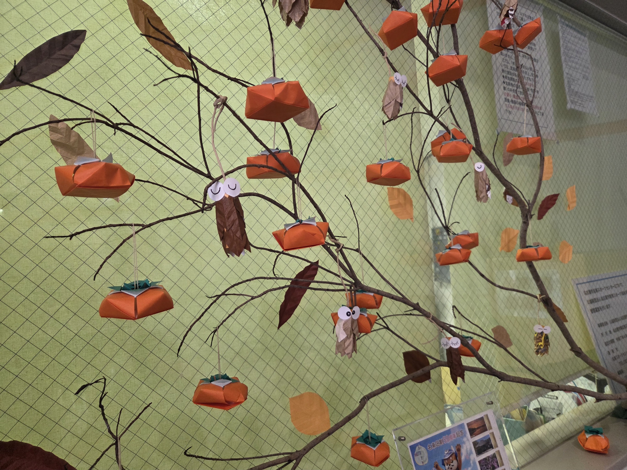 事務所受付横や案内板には紅葉や柿が飾ってあります🍁