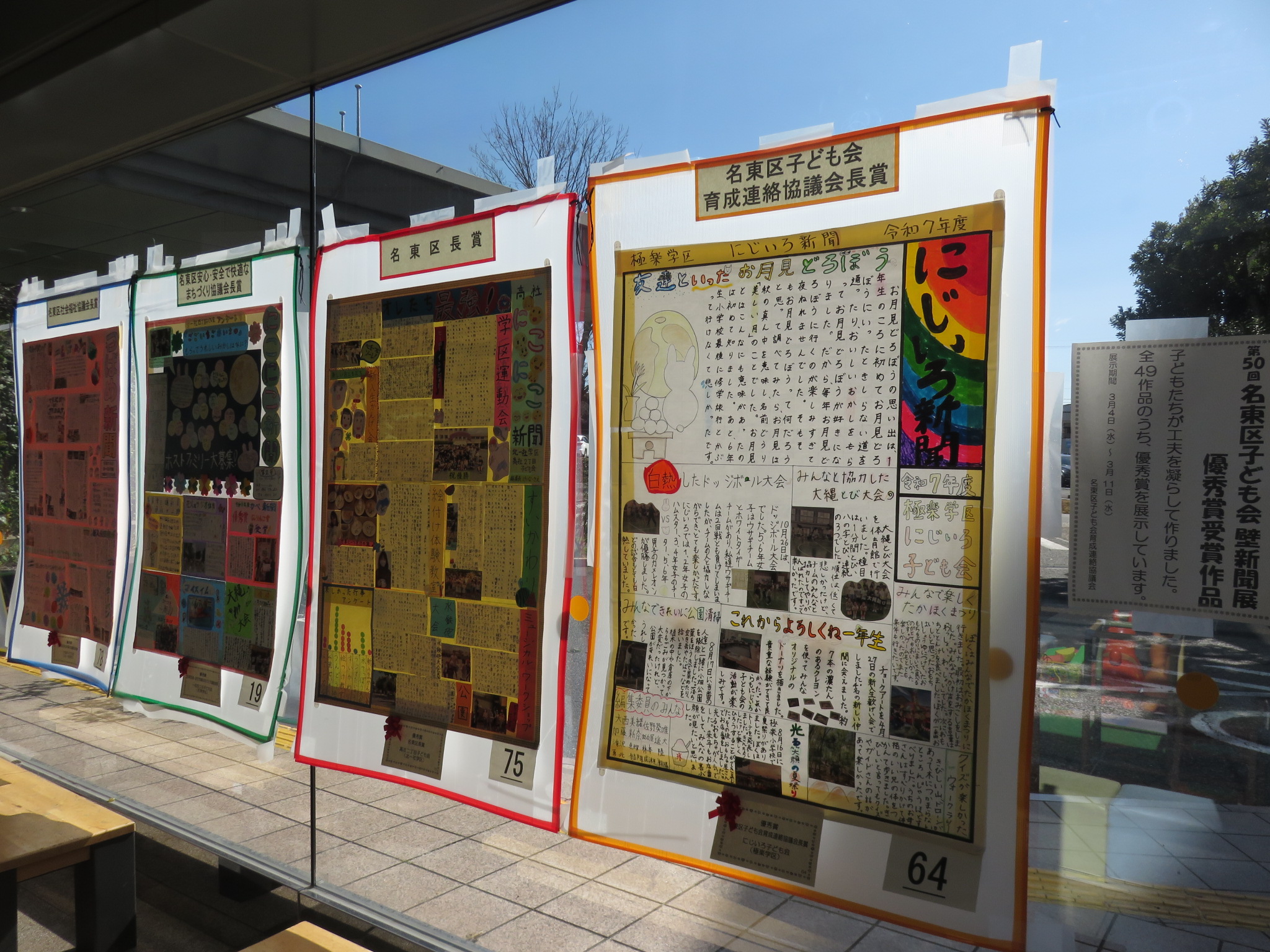 名東区子ども会壁新聞展 2026年3月4日 水曜日 現在、ロビーでは名東区子ども会における壁新聞を展示しています! 壁新聞には各子ども会の1年間のあゆみや行事内容など様々な情報が盛りだくさんです! 3月11日まで展示しておりますので、子どもたちが工夫を凝らした作品をぜひご覧ください♪