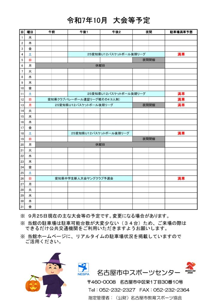いつも名古屋市中スポーツセンターをご利用いただきありがとうございます。