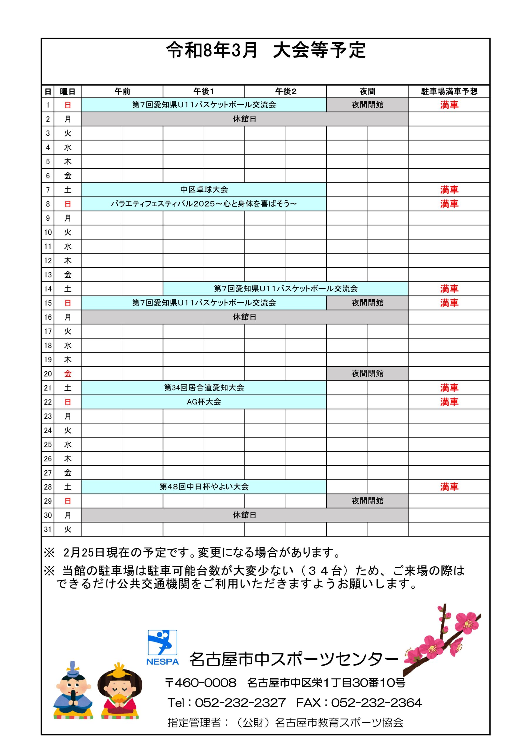 いつも名古屋市中スポーツセンターをご利用いただきありがとうございます。