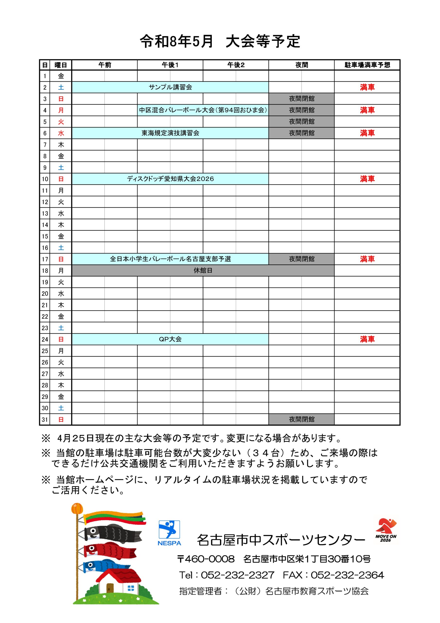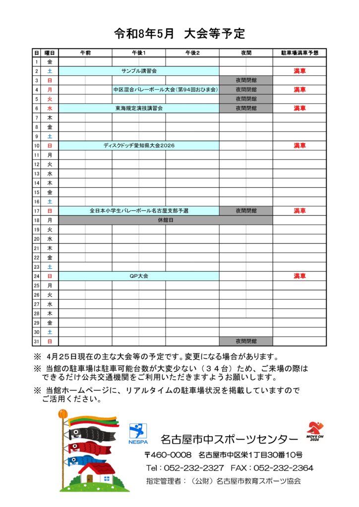 令和8年5月大会等予定につきましては、以下の通りです。
