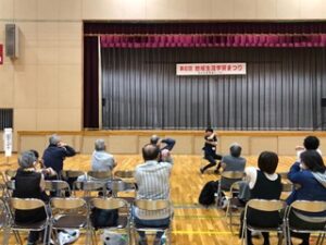 本日(11/1)は、中村生涯学習センターにおいて「第40回地域生涯学習まつり」が開催され、その中で中村スポーツセンターの職員が出向き「みんなで健康体操」を実施しました。