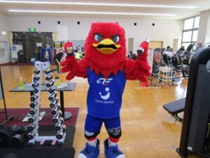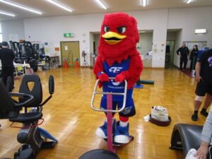 リード君が中村スポーツセンターのトレーニング室を訪れてくれました。記念写真を撮ったり、握手もしてくれました。