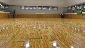まずは、第1競技場の床面の安全確保と快適性の向上のために、ささくれが発生しそうな板の交換、コート剤を全面に塗布することで、床面の適度なすべりと光沢を回復しました。ぜひ一度ご利用いただき、体感ください。