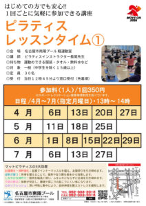 南陽プール『ピラティスレッスンタイム①』開催のお知らせ(指定月曜日 13時00分~14時00分)