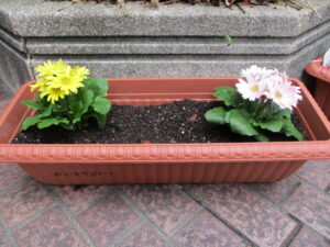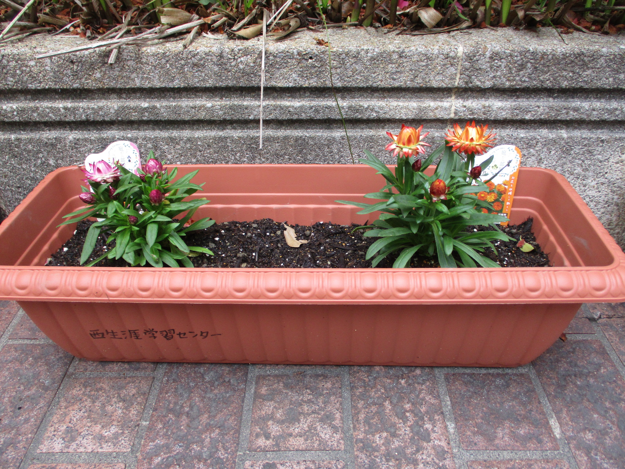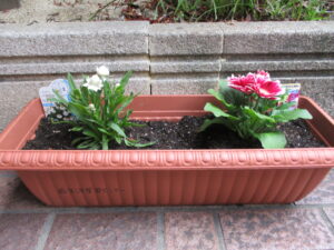 花のプランターを設置しました🌺 2026年4月2日 木曜日 春の訪れとともに、美しい花たちが咲き始めました。1階玄関前の掲揚塔の周りに、サフィニア、ガーベラ、ヘリクリサムの花のプランターを設置しました。
