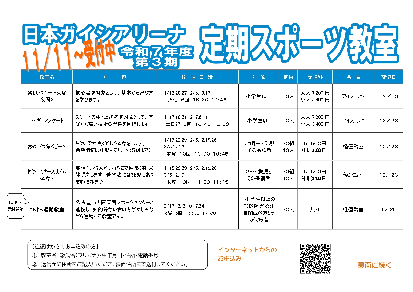 11/11より、第3期定期スポーツ教室の受付を開始しました!