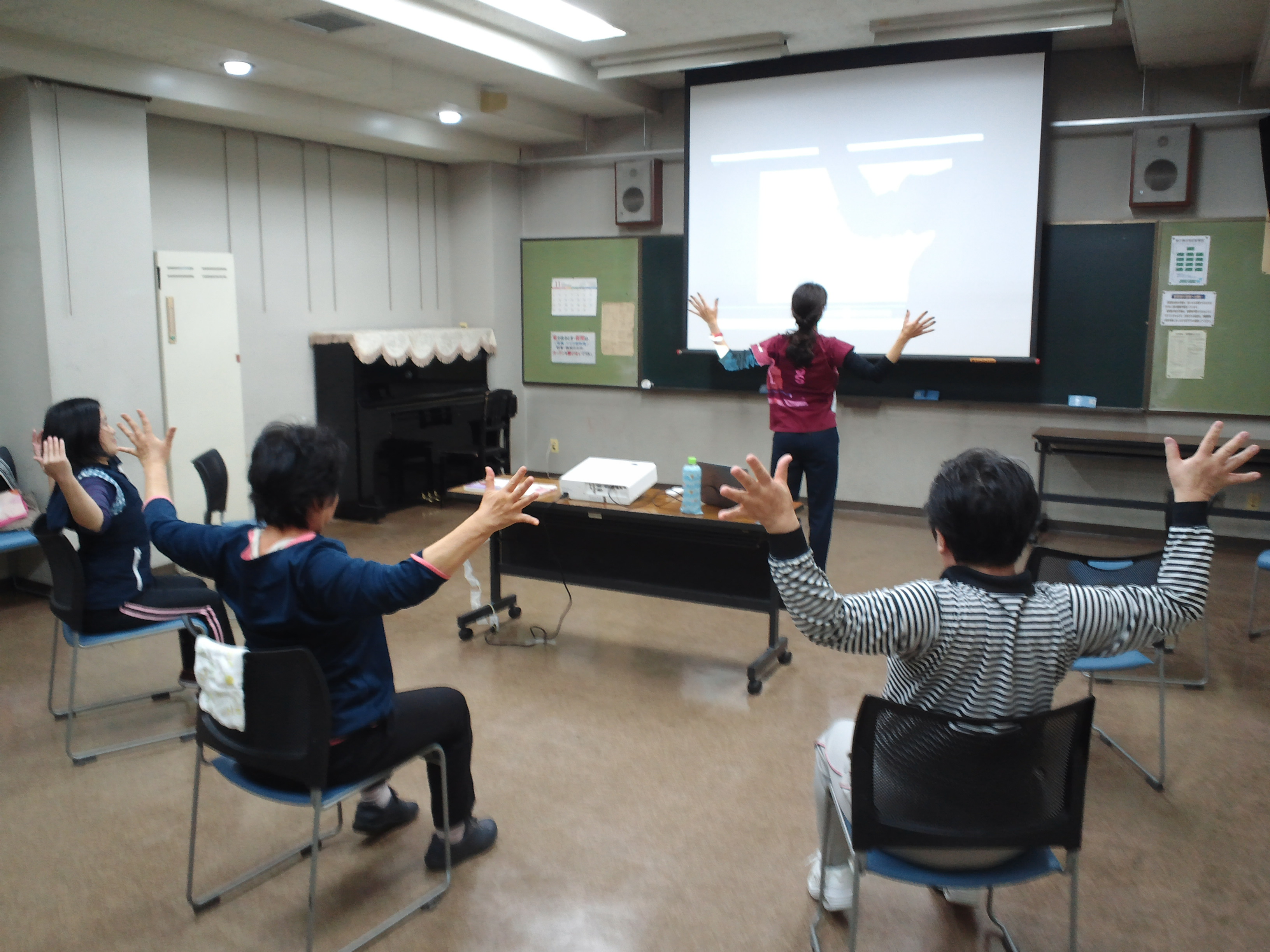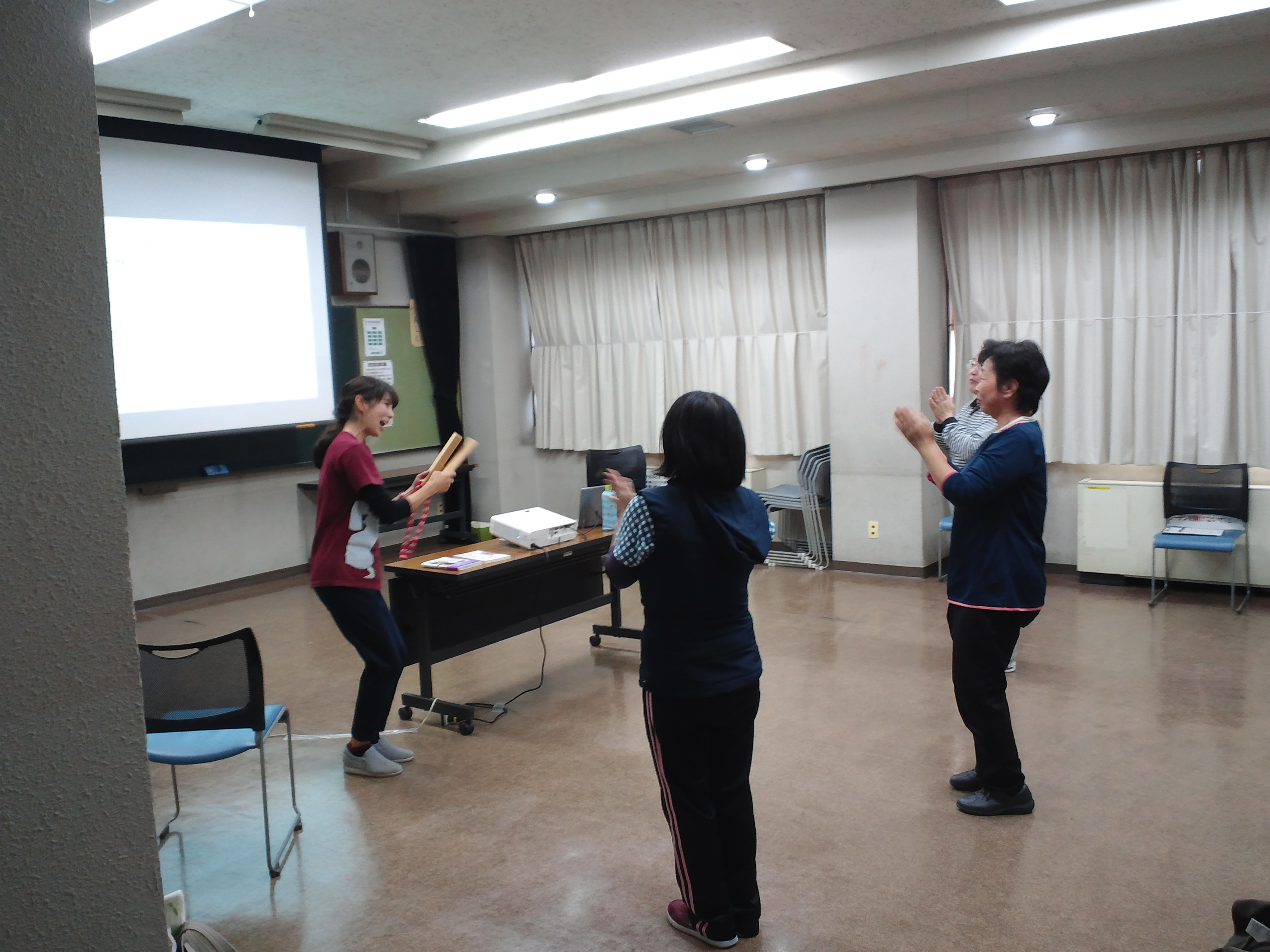 11月16日(金)NOSSインストラクターの氷美さんを招いてNESPA主催事業「ゆったり踊ろう、和のフィットネス」を開催しました。日本舞踊の動きを取り入れた腰のひねり、内またでの歩行により、心臓に負担をかけないで筋力の衰えが防げると好評でした。