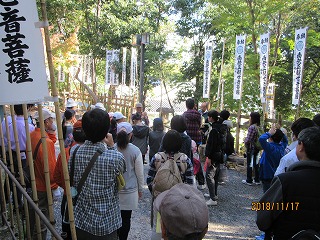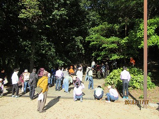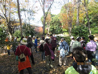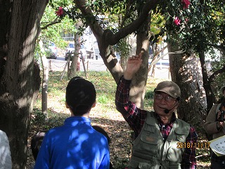 11月17日(土)八事山興正寺公園で、八事里山づくりの会の協力のもと、自然観察指導員の篠田陽作さんの指導による自然観察会を開催いたしました。当日は、さわやかな快晴の一日となり、64名の方に参加いただきました。秋が深まり、葉が色づきつつある興正寺公園の雑木林を歩きながら秋の里山のお話をうかがいました。