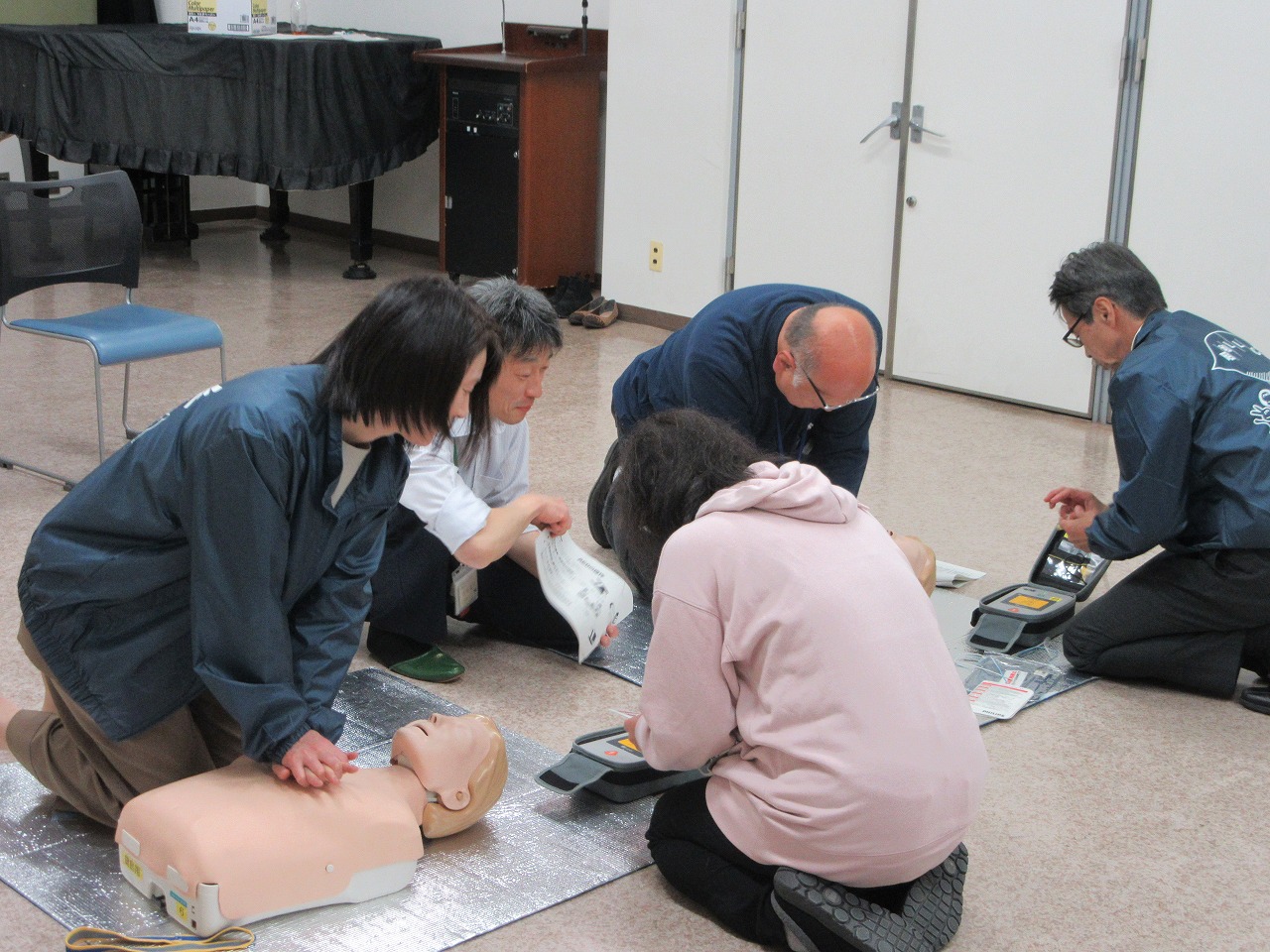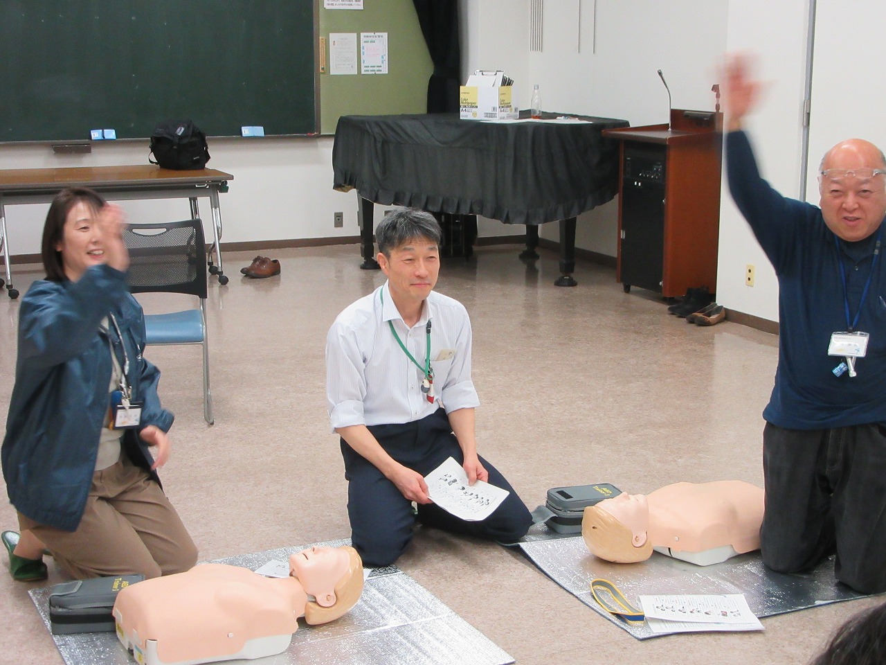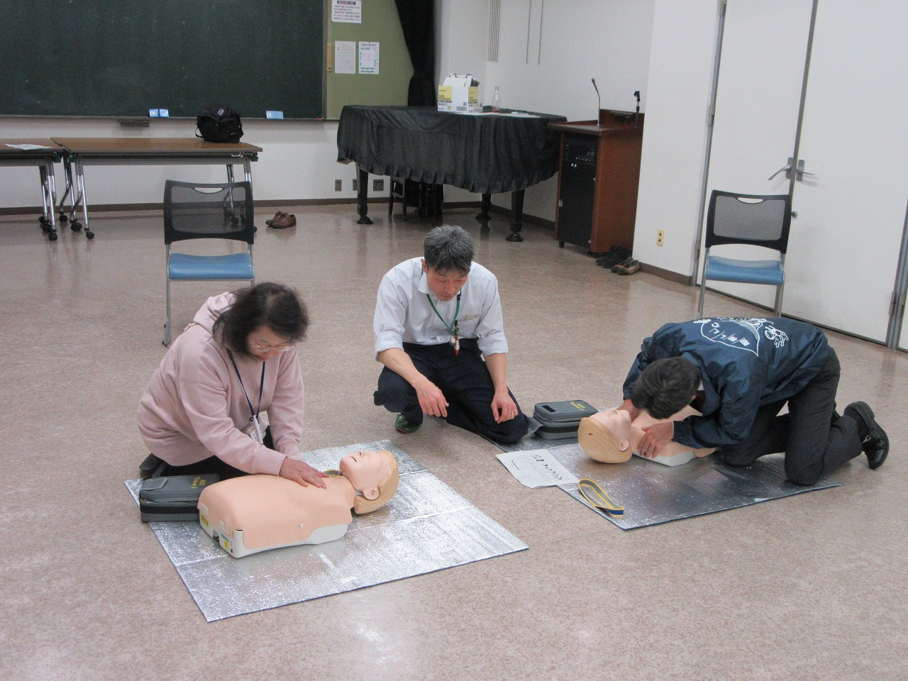 3時間の講習では、「119番」「たえまなく」「AEDが最優先」の3つのキーワードを軸に、応急手当の手順を学びました。