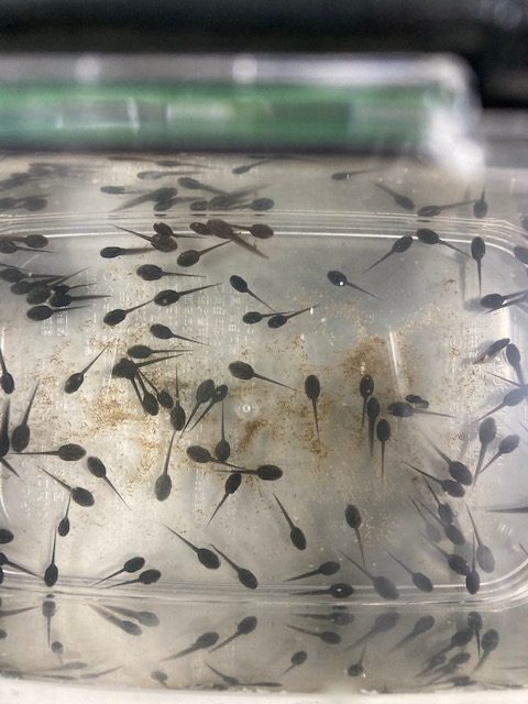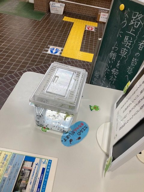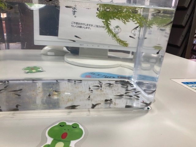 カエルの卵がかえったよ 2021年2月27日 土曜日 ロビーに置いたカエルの卵がかえり、オタマジャクシになりました。 多くの利用者の方が、珍しそうに(気持ち悪そうに?)見てくれます。 春は確実に近づいています。どんなカエルになるでしょう。
