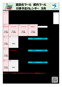 冨田北プール5月の行事予定です。ご利用の際にご活用ください
