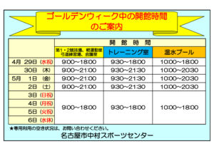 ※工事、プール水抜き清掃等のため臨時休場する場合があります