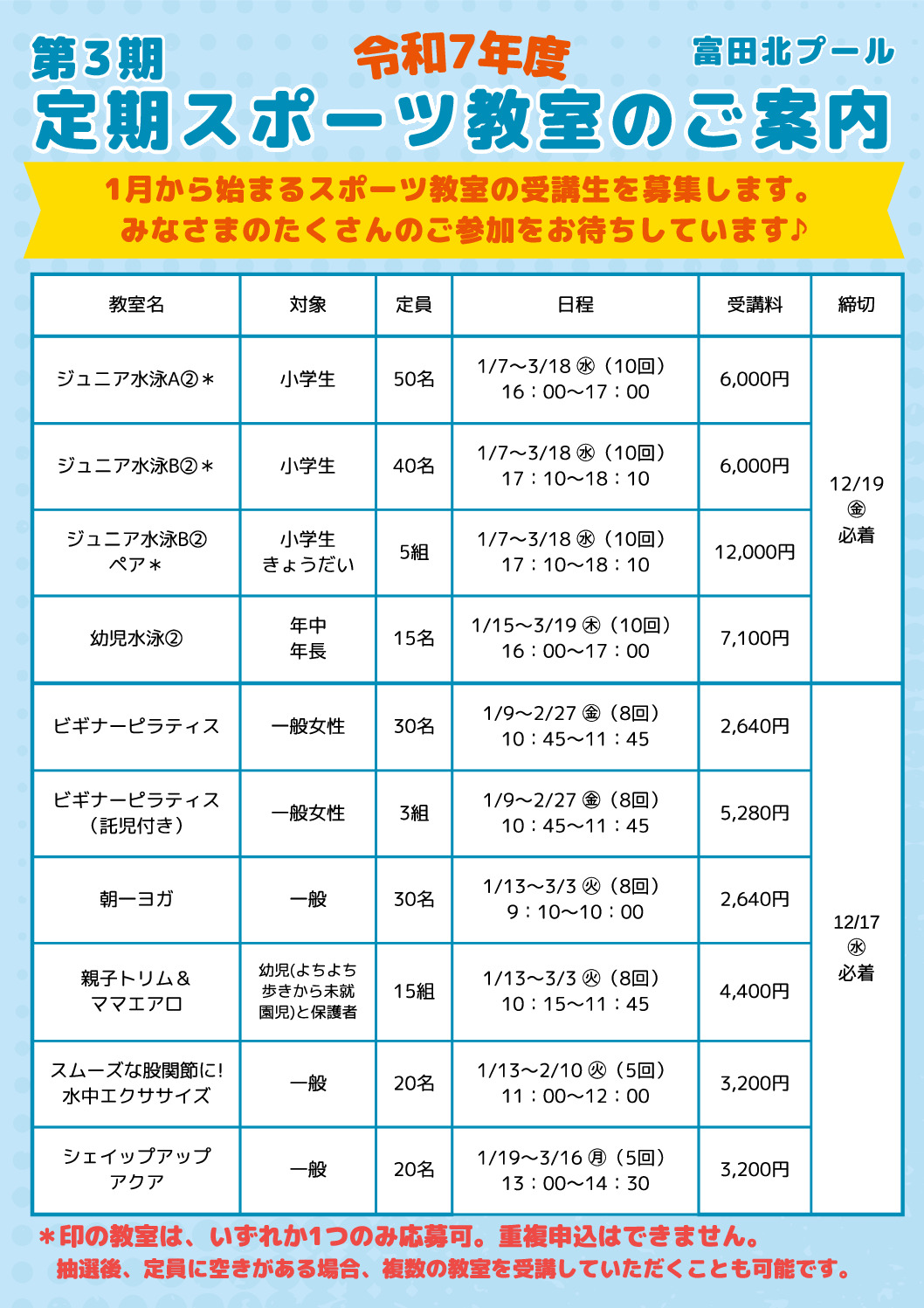 ※工事、プール水抜き清掃等のため臨時休場する場合があります